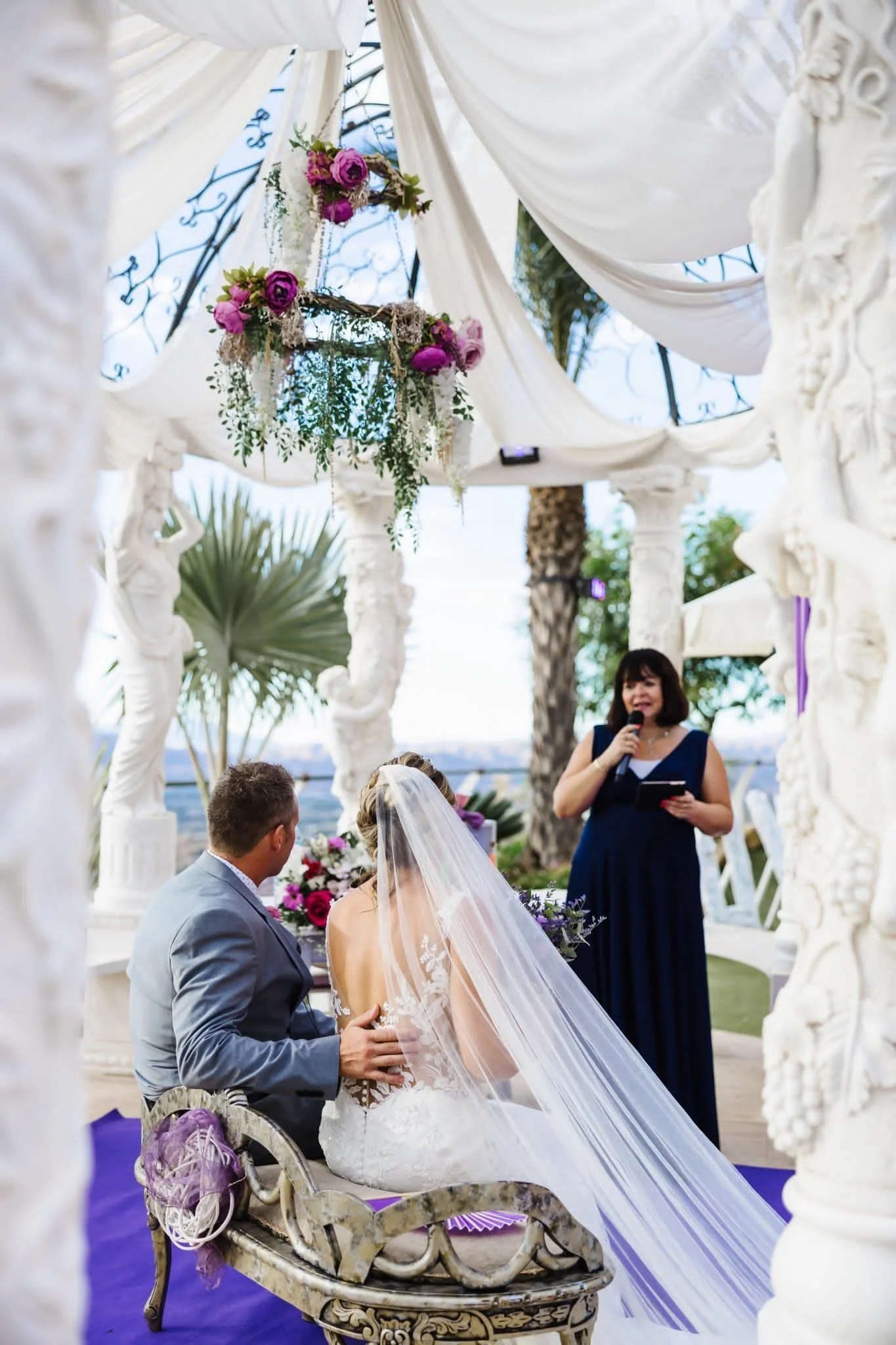 Nikki helped us via Skype and she was so professional and sensitive and her attention to detail was great. Nikki captured our story, our vows and our meaning as a couple and family so beautifully in her wonderfully bespoke scripture and conducted our ceremony in a really emotional and heartfelt way to both us and our guests at the amazing Vincci setting. Thank you Nikki for being part of our wonderful day.”